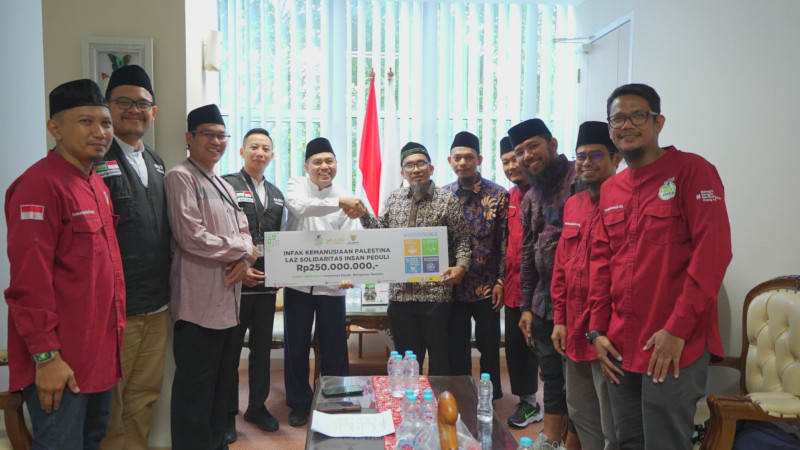 Badan Amil Zakat Nasional (BAZNAS) RI menerima infak kemanusiaan untuk Palestina dari Yayasan Solidaritas Insan Peduli sebesar Rp250 juta, sebagai wujud kepedulian terhadap masyarakat di negeri tersebut.Infak kemanusiaan diserahkan langsung oleh Ketua Yayasan Solidaritas Insan Peduli, Dadang Rohendi dan diterima Pimpinan BAZNAS RI Bidang Koordinasi Zakat Nasional, KH. Achmad Sudrajat Lc., MA., berbarengan dengan penyerahan Surat Rekomendasi Perpanjangan LAZ dan Penandatanganan Pakta Integritas yang digelar di Gedung BAZNAS RI, Jakarta, Jumat (26/4/2024).
